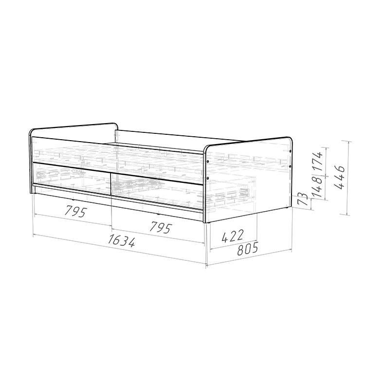 2.    Защита от травм: Отсутствие острых углов и мягкий противоударный кант делают кровать безопасной и предотвращают возможные травмы во время активных игр.