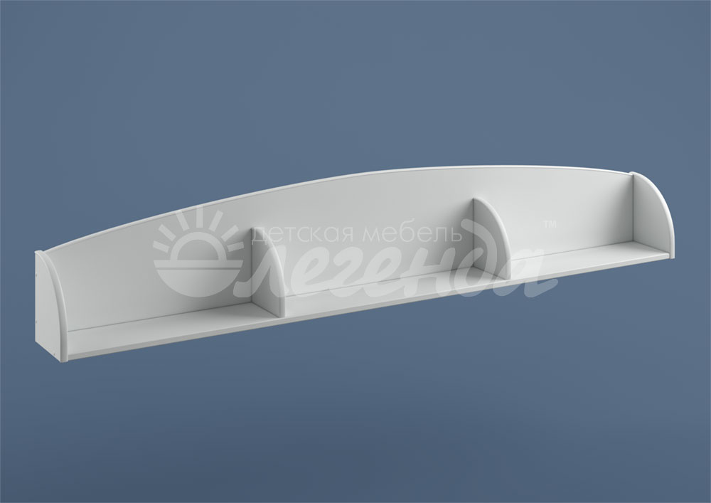 Настенная полка Л-10 белая разделена на три секции и имеет боковые ограничители,на ней удобно располагать приятные мелочи, книжки на ночь и другие вещи.